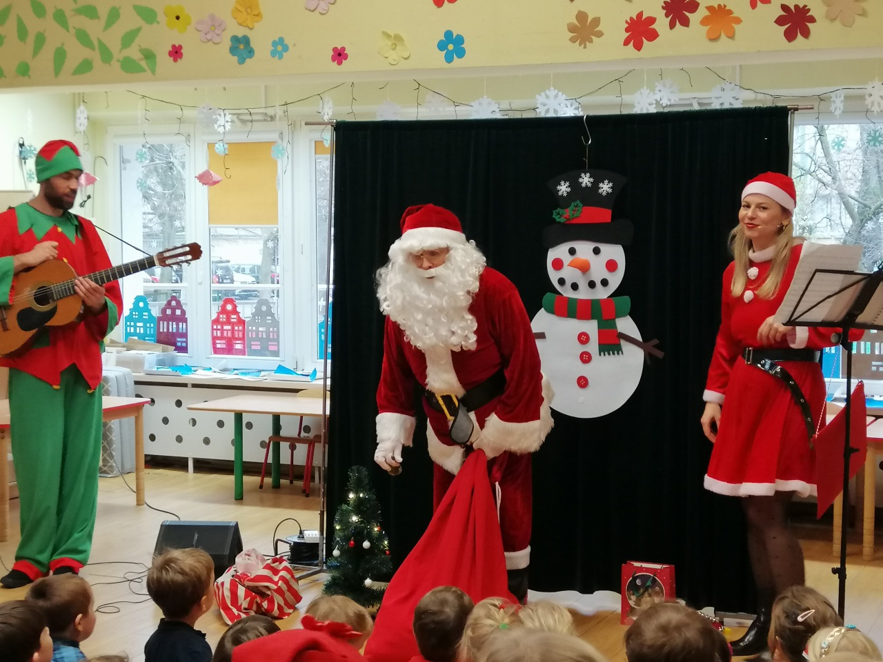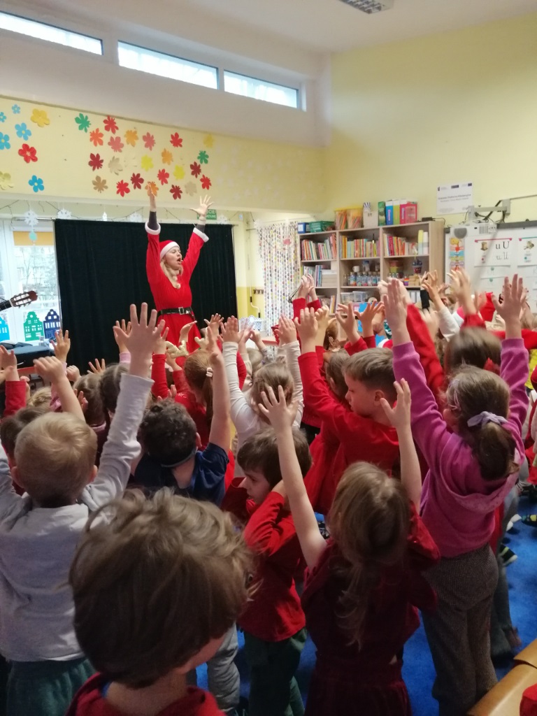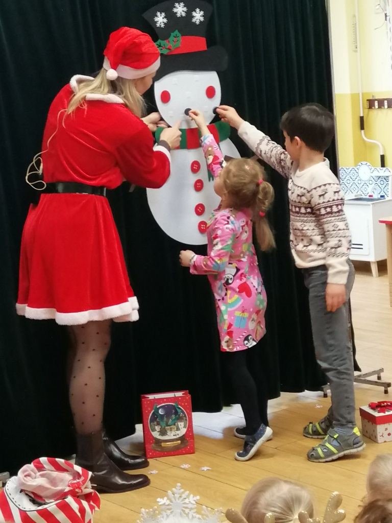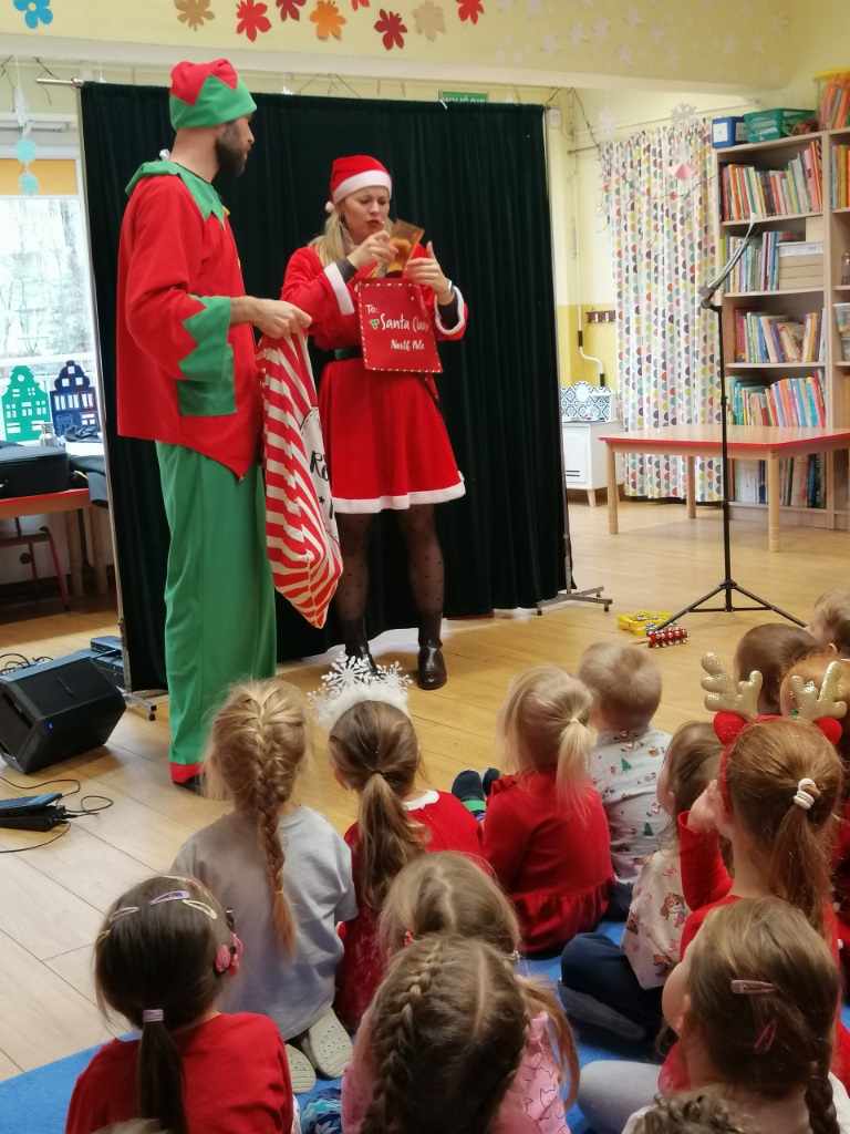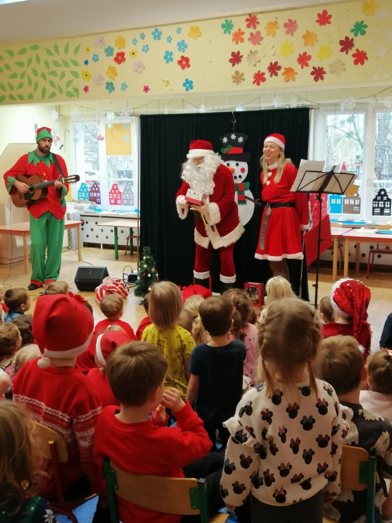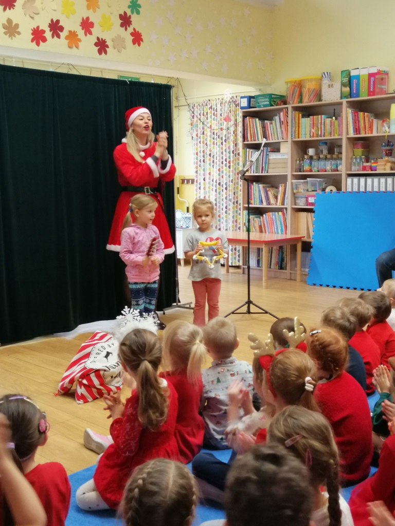 8 grudnia zawitał do naszego przedszkola wyjątkowy gość - św. Mikołaj. Temu długo przez dzieci wyczekiwanemu wydarzeniu towarzyszyło muzyczne przedstawienie „Świąteczna Przygoda”. Śnieżynka i Elf zaprosili dzieci do udziału w przygotowaniach do świąt, a zimowo-świąteczne melodie stworzyły ciepły, radosny nastrój.