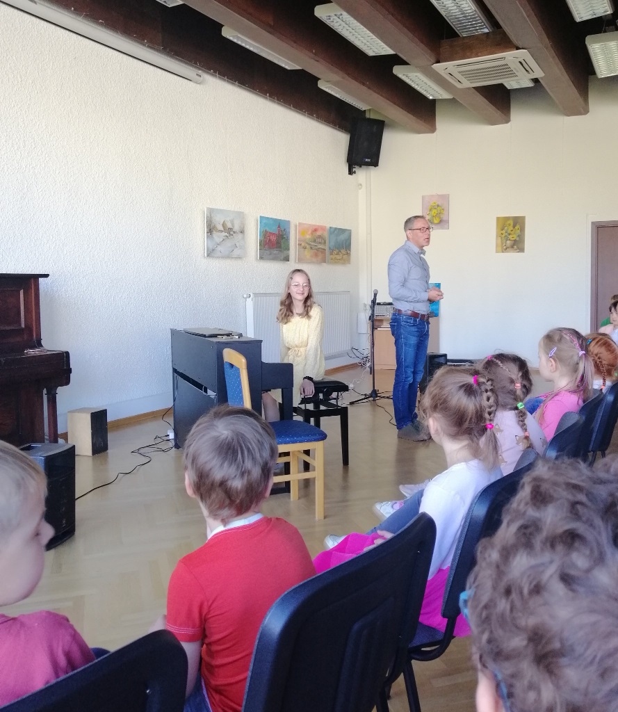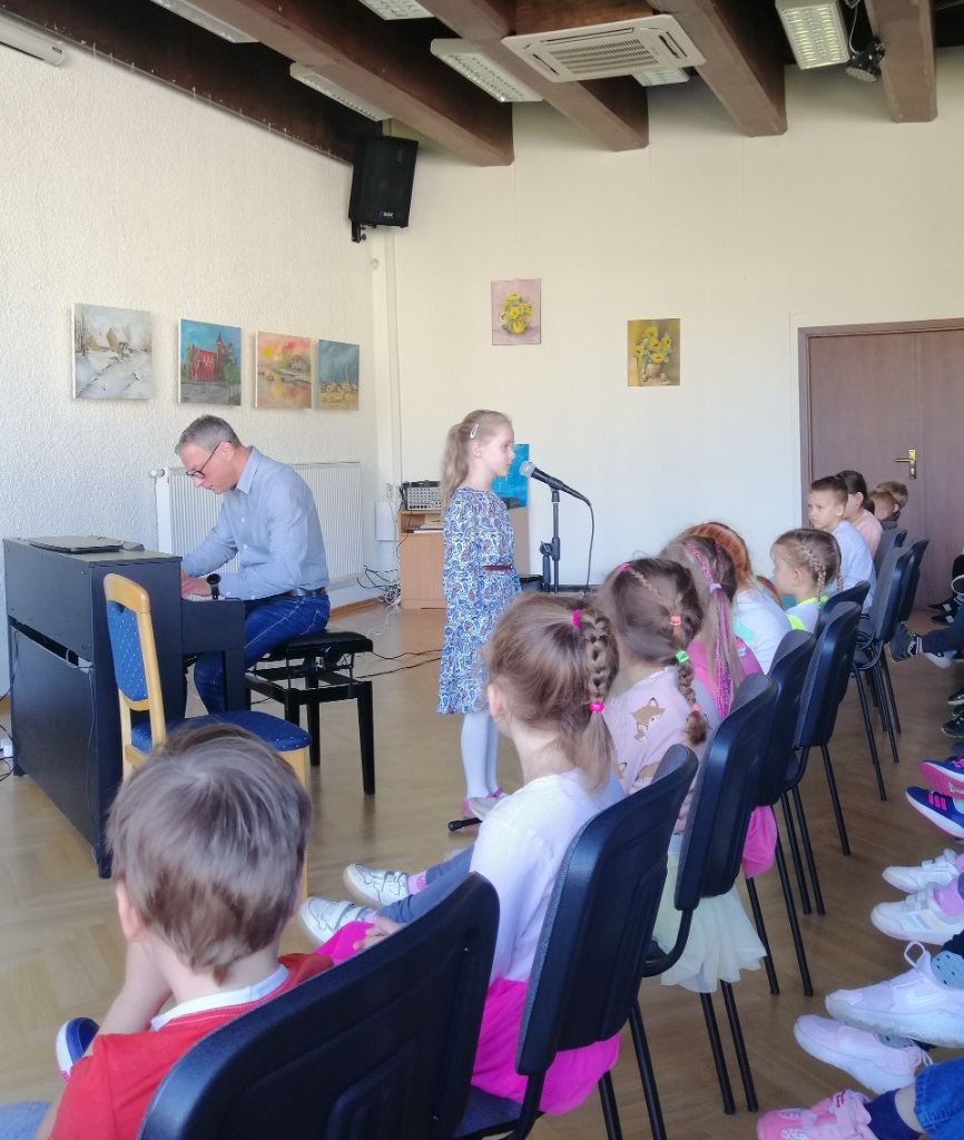 26 września dzieci z naszego przedszkola wzięły udział w koncercie zorganizowanym w Domu Kultury na ulicy Śląskiej. Podczas spotkania mogły posłuchać i porównać brzmienie organów, klawesynu oraz pianina, a także dowiedzieć się, jak zbudowane jest pianino. W programie znalazły się występy młodych artystek - Natalii i Alicji - absolwentki naszego przedszkola, która zaprezentowała grę na pianinie i śpiew. Dzieci przypomniały sobie nazwiska znanych kompozytorów, a na zakończenie miały okazję samodzielnie spróbować gry na instrumentach. W koncercie uczestniczył tata jednego z naszych przedszkolaków, który współtworzył muzyczną część wydarzenia. Serdecznie dziękujemy za zaproszenie!