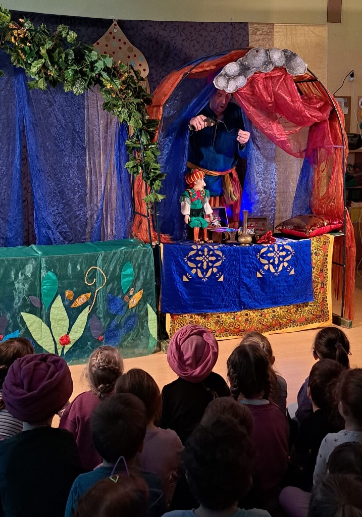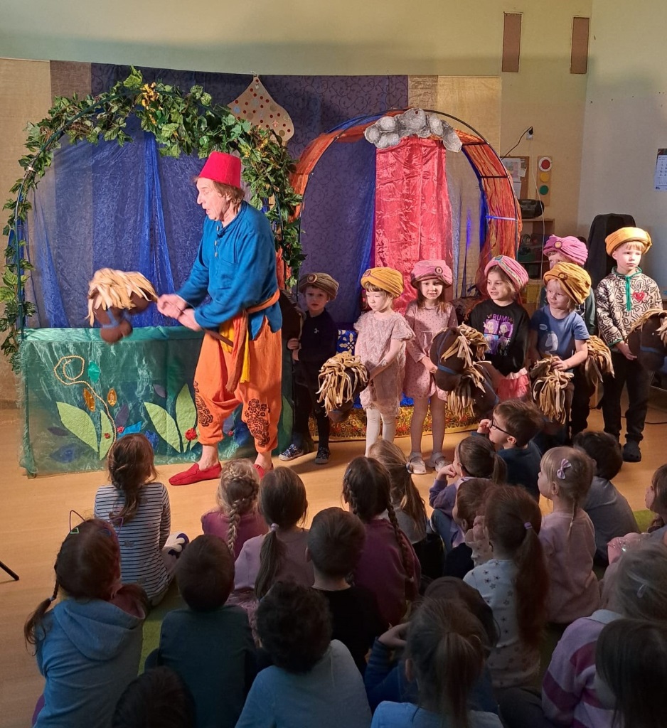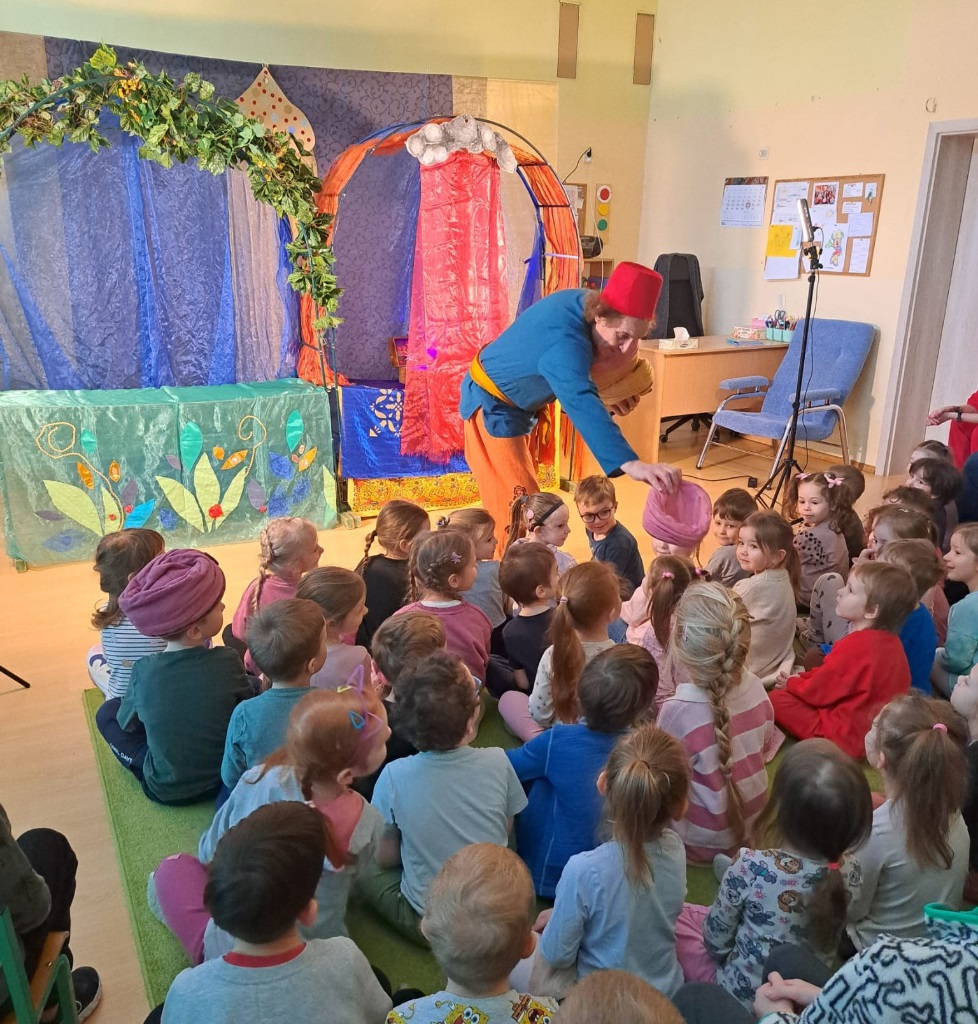 Dziś nasze przedszkole odwiedził Teatr Qfer z barwnym spektaklem inspirowanym opowieściami z Księgi tysiąca i jednej nocy. Dzieci miały okazję poznać przygody Aladyna i Ali Baby, pełne magii, tajemnic i niezwykłych wydarzeń.