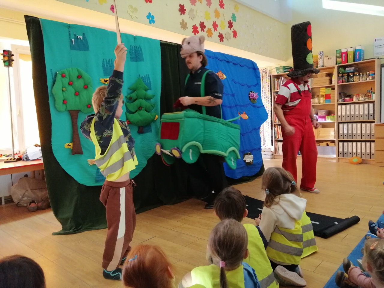Historia misia, który nie znał znaków drogowych, stała się pretekstem do rozmowy o bezpieczeństwie, sygnalizacji świetlnej, znakach drogowych i prawidłowym zachowaniu na ulicy. Aktorzy w ciekawy sposób wprowadzili dzieci w tematykę ruchu drogowego.